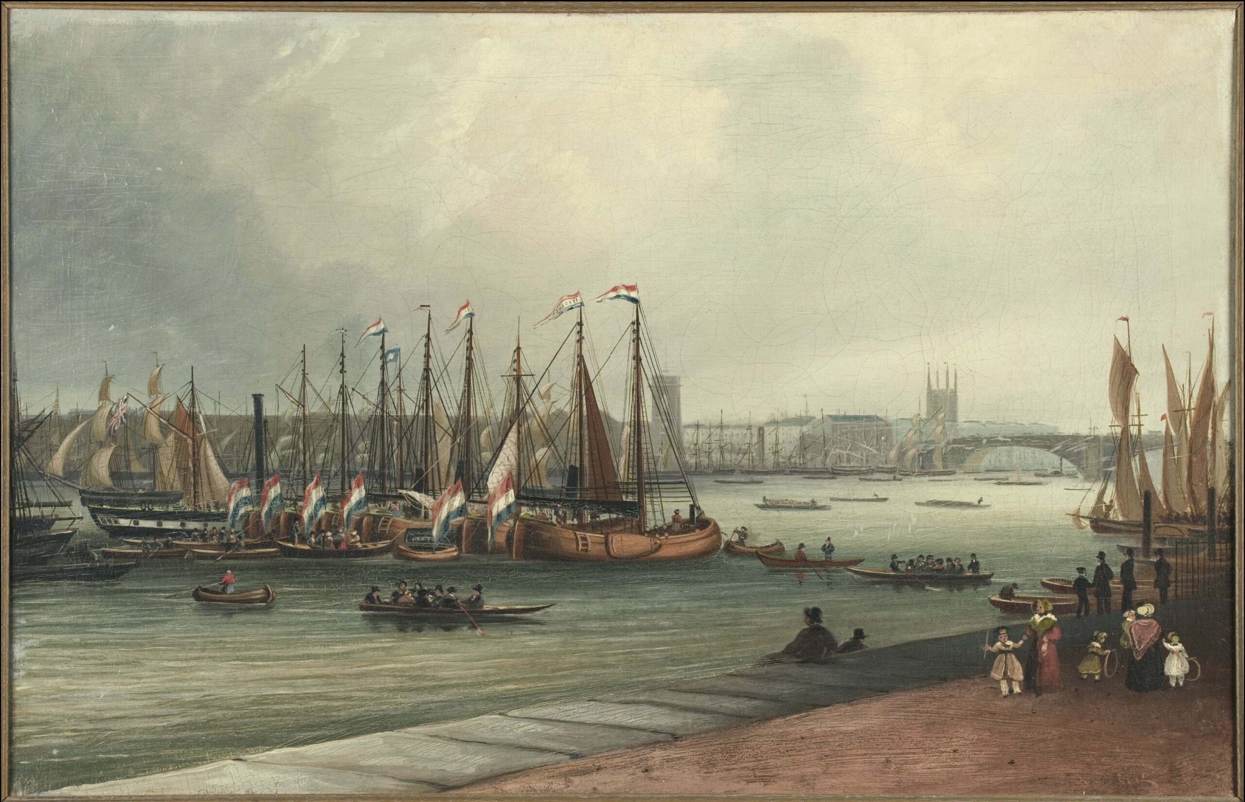 Midden in de Theems wachten twee palingschepen – duidelijk gelabeld – net buiten Queen’s Hythe met hun kronkelende lading. In die tijd was de bevolking van Londen inmiddels gegroeid tot ongeveer 200.000 mensen.