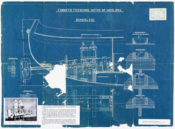 Fundatietekening motor inbouw KY (1928)